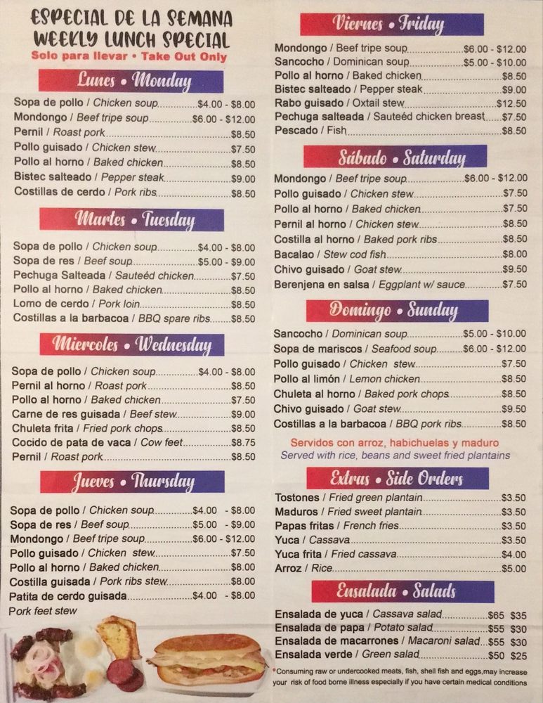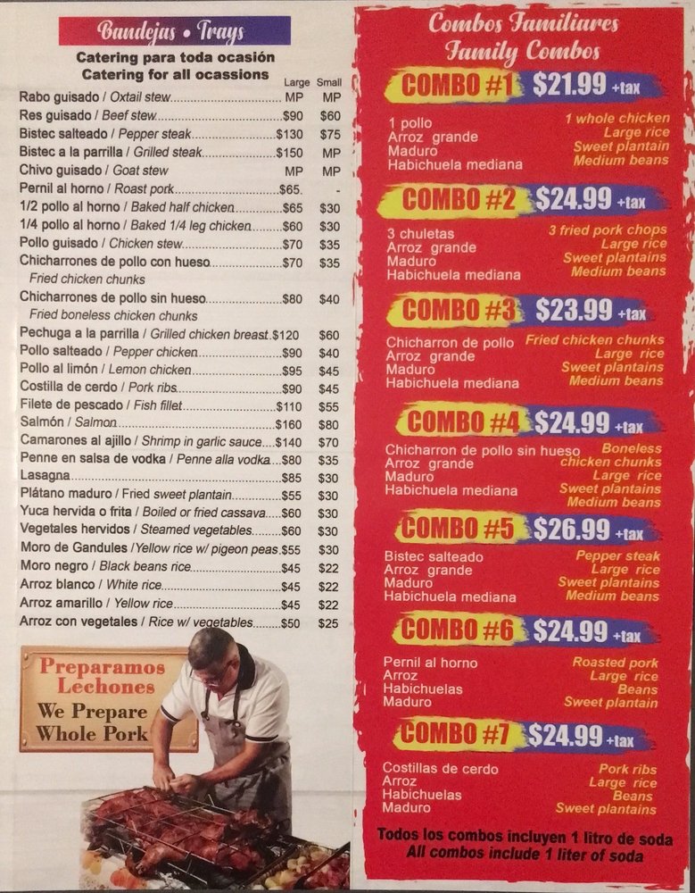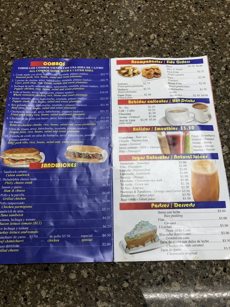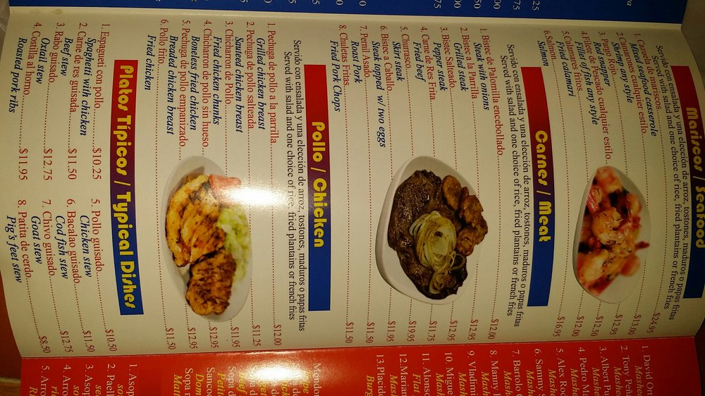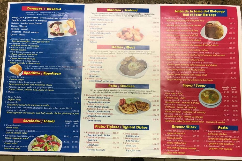 Introducing the menu at El Mofongo Restaurant, located in Hempstead, NY, brings a taste of authentic Dominican cuisine to your table. With options like pernil, chicken, plantains, and mofongo, each dish is made with care and attention to detail. The shrimp mofongo is a must-try, perfectly cooked with a garlic sauce that will leave you craving more. The tender and juicy pernil, along with the flavorful beef stew, showcases the skill and quality of the ingredients used. Don't miss out on the legendary desserts, like the tres leches cake and flan, that complete your dining experience. The friendly staff and welcoming atmosphere make you feel at home, ensuring a memorable dining experience every visit. Your taste buds will thank you for indulging in the delicious offerings at El Mofongo Restaurant.